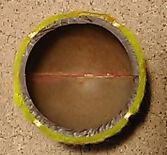 従前の機種では、上から針を刺し注入されて下に落ちた針穴修復剤は、ボールを反転して針穴を真下に向けることによりコアの内壁を伝って針穴に到達し針穴が塞がります。